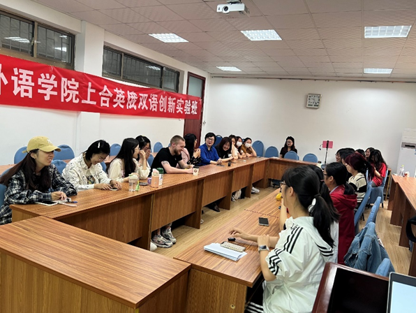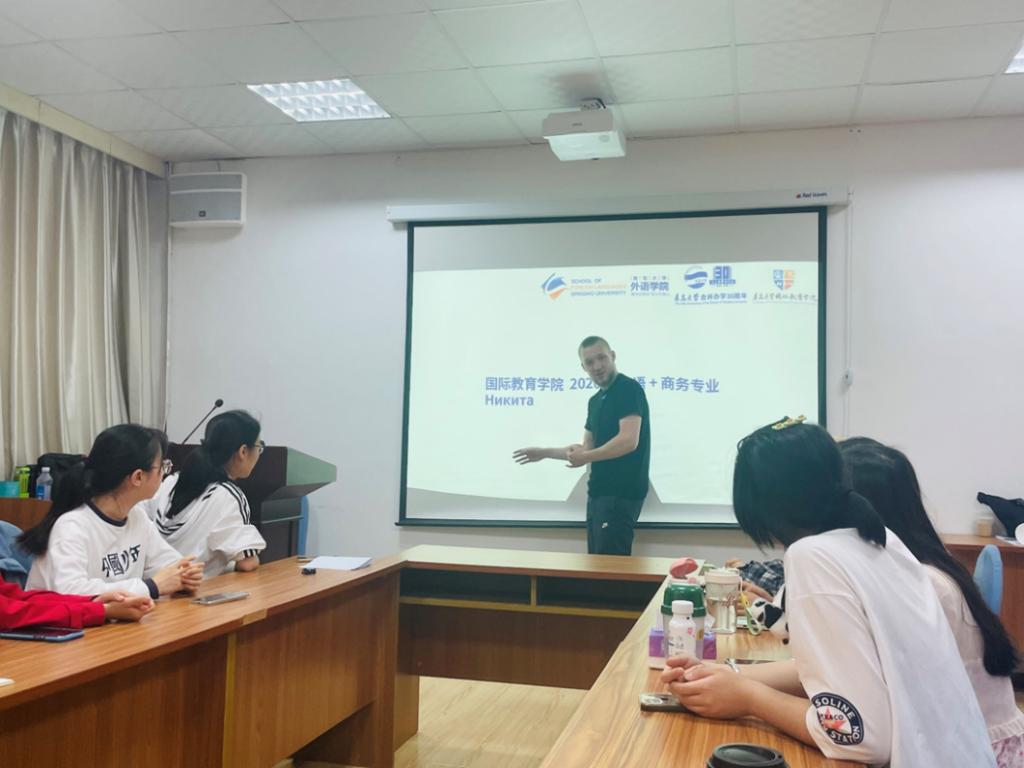 本次活动邀请了英语系王薇老师和刘晓玲老师参与,上午九点,2021级、2022级英俄班学子首先与俄罗斯留学生在博文楼312举行交流见面会。