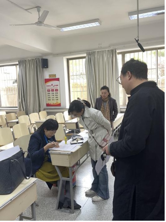 考务现场王俊菊教授向教育系副主任吕凯良老师和学院本科教学办公室负责考务的牛凤娟、陆慧两位老师细致询问此次考试工作准备、试卷材料保管、考场安排等环节,逐条确认了考试组织程序,并在考务老师的陪同下巡视了各个考场,对KY开元集团官网此次考试的组织工作给予充分肯定。王俊菊教授也向考务老师征求了对考试的组织方的相关工作建议。