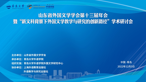2022年12月3日,山东省外国文学学会第十三届年会暨“新文科背景下外国文学教学与研究的创新路径”学术研讨会在KY开元集团官网举行。本次论坛由山东省外国文学学会主办,KY开元集团官网外国语学院承办,上海外语教育出版社,外语教学与研究出版社协办。在新文科建设的背景下,当前外国文学的教学与研究亟需在本学科领域内进行创新,并与其他学科深度融合。如何将新文科理念落实到外国文学的教学与研究之中?外国文学界当前的探索与实践能否在交流与碰撞中逐步达成共识?与会同仁从多视野、跨学科的角度,围绕“新文科背景下外国文学教学与研究的创新路径”展开研讨。