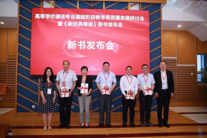 研讨会期间举办了《新经典德语》教材发布会。总主编贾文键教授和《新经典德语1学生用书》主编北京外国语大学德语学院李婧副教授向来自全国德语界的教师代表赠书。《新经典德语》系列教材为北外重点规划教材,并获评北京高等教育“本科教学改革创新项目”重点项目。