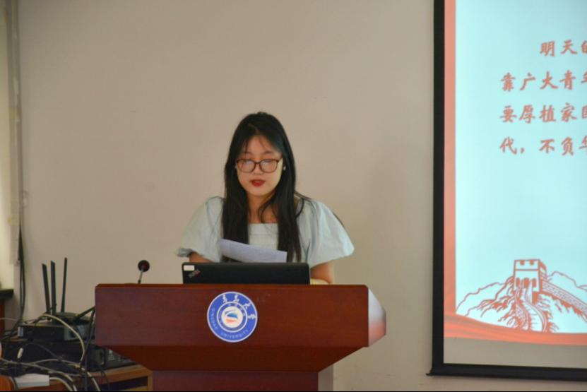 学生第一党支部崔丽萍以“新时代 好少年”为主题,呼吁青年人一定是“有梦想“、”有力量“、”有情怀“,应将把所有的才智、所有的努力、所有的凌云壮志,都奉献给我们的祖国。