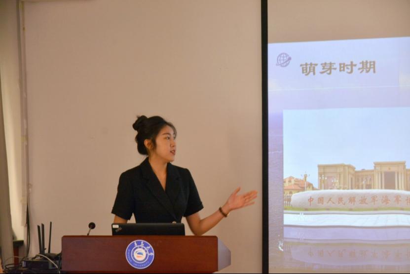 学生第二党支部张锦秀以“踏浪前行,逐梦深蓝”为主题,讲述了自己与支部一起走进海军博物馆,切身体会海军历史帷幕里的峥嵘历程的故事。从而阐述作为一名KY开元集团官网的学子,不应该只是两国语言的学习者,更应该作为中国故事的讲述人,文化交流的摆渡人。