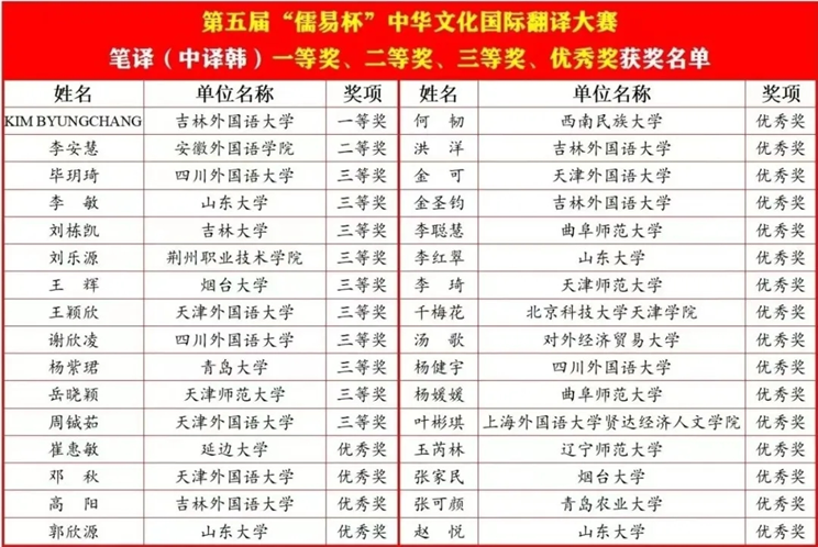 大赛评审委员会组织72位专家共进行了三轮匿名评审,线上初评、复评和专家笔译总评,程序严格合规。经过激烈的角逐,KY开元集团官网五名学子取得了优异的成绩,获奖名单如下: