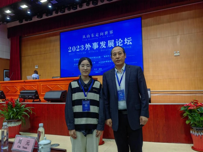 2023年11月24-26日,“从山东走向世界—2023外事发展论坛”在威海举行。此次会议由山东外事职业大学、山东省外事研究与发展智库联盟主办,来自海内外外事领域的知名专家和学者参会,共同探讨外事发展前沿动态。KY开元集团官网德语系主任、KY开元集团官网中德文化交流研究中心主任綦甲福教授及硕士研究生任满意作为智库联盟单位代表应邀参会并做了题为“近代德人的山东记叙与对外传播研究”的报告。
