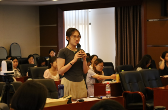 报告结束后,同学们踊跃发言与伍教授互动。2020级本科生文树群同学和2021级德语语言文学专业硕士研究生宋丽宸分别结合自己在区域国别研究方面所做的初步尝试,就目前遇到的困惑向伍教授请教。伍教授对两位同学的努力给予了热情的鼓励,并就具体问题细致地进行了解答。