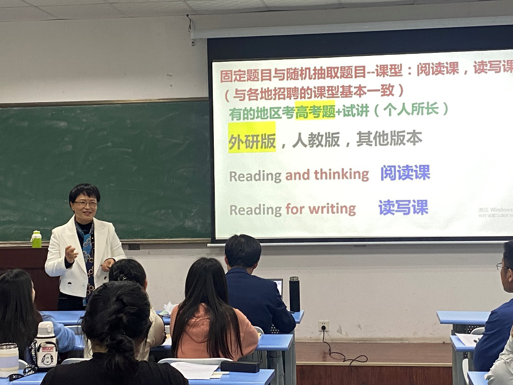 随后,于老师深入解读了英语阅读课、读写课课型的教学设计策略,并提供了切实可行的教学方法和思路。于老师还分享了山东省师范类高校学生从业技能大赛及高中英语教师资格证的备战技巧,帮助同学们更好地应对未来的职业挑战。