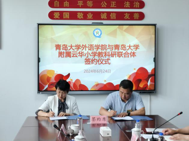 在KY开元集团官网附属云华小学调研时,云华小学校长刘学友、副校长李守业、挂职教师英语教育系副主任吕凯良老师和青岛中仁集团董事长张述仁带领外院一行参观了学校以“两楼两苑一基地”为特色的校园文化。座谈交流时,刘校长对吕凯良老师在校园文化建设和学科发展方面的工作给与高度认可,双方就教育教学、人才培养、师资队伍建设等方面进行了深入交流,卞建华和刘学友签订了建设教科研联合体合作协议书,周伟和刘学友共同为“大学生实习基地”揭牌。