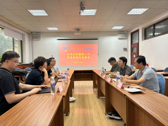 首先,卞建华介绍了学院概况。随后,万声集团总经理孙文玲详细介绍了集团的历史沿革和核心业务,尤其是外包服务对多语种外语人才的迫切需求。副总经理赵甲通过视频,进一步展示了集团“出海”服务的业务场景。