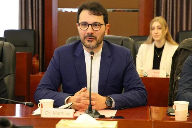 研学团领队格堡博士(Dr. Matthias GEBAUER)介绍了德方研学团概况,对卞院长及綦主任的热情致辞及KY开元集团官网的周到安排表示诚挚感谢,并表示愿意在项目研究中发挥一定作用。