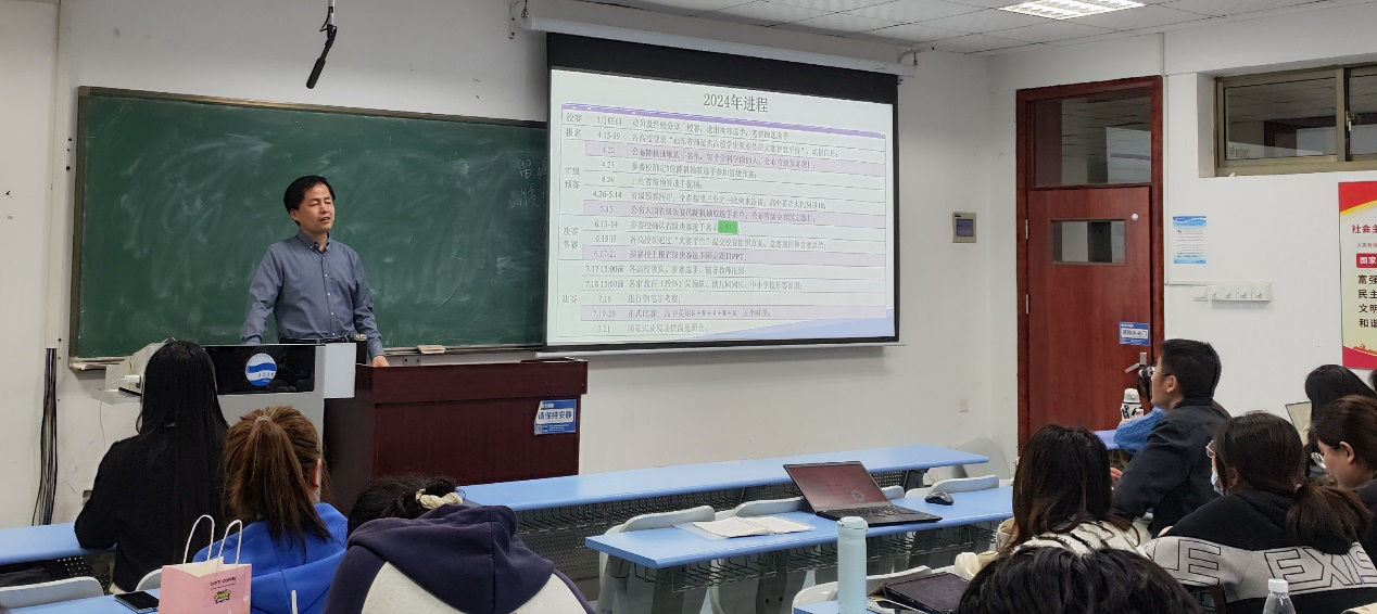 同学们分享之后,布占廷副院长对大赛赛程、备赛流程等进行简要介绍,强调了本技能大赛对于师范类学生的重要性,以及大赛“以赛促教、以赛促学、以赛促改”的宗旨;他通过竞赛日程表向同学们指出备赛应进行系统规划、分阶段备赛以及加强自主学习等,建议同学们加强理论和新课标学习,进一步夯实自己的教学基本功、增加课堂互动频率、优化板书设计。