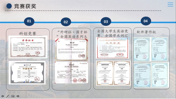 除了专业课程学习,创新班的同学们积极报名参加各类英语学术竞赛:多名同学在“外研社·国才杯”全国英语系列大赛、“21世纪杯”全国英语演讲比赛、全国大学生英语竞赛、全国学术词汇竞赛等专业赛事中表现优异,荣获各类学术竞赛奖项共30余项。曾获“外研社·国才杯”一项国奖、两项省奖及大英赛两项国奖的李雅斐同学说:“每一场比赛,都像是一次自我观照的机会,而成绩和奖项只不过是我与英语之间爱恨交织的小小纪念品。我非常感谢KY开元集团官网各位老师对我的帮助和指导,给予我参与这场语言之旅的勇气、热情和能力。”
