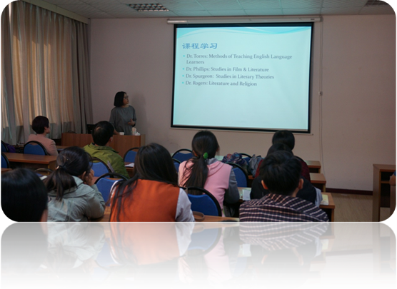 首先做汇报的是王薇老师。她首先简要介绍美国堪萨斯大学以及选择这所学校的缘由、前期准备和自己对访学的计划制定情况;然后分别从参与教学课程、参与学术活动、进行课题研究三个方面介绍了所见所闻与收获;最后阐述了访学回来后对下一步工作产生的影响。