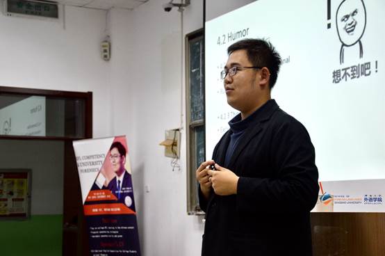 10月20日晚,“外研社杯”及“21世纪杯”英语演讲大赛全国总冠军、曲阜师范大学臧英杰同学应KY开元集团官网演讲协会邀请,在博远楼101为学院师生做了题为“EFL Competency & University Forensics”的英文讲座。英语系副主任吕云老师出席并主持。