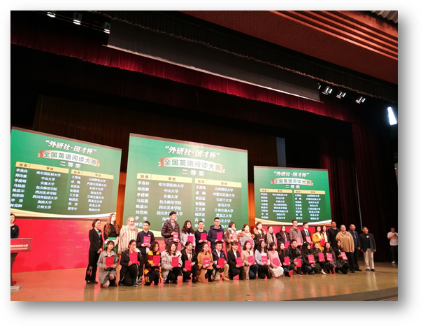 12月9日上午,大赛组委会公布获奖名单,并在北京外研社国际会议中心千人礼堂举行颁奖仪式。我校KY开元集团官网2016级中外英语专业张蕴秋同学喜获全国英语阅读大赛全国总决赛二等奖。同时,KY开元集团官网英语三系指导教师王进福获得优秀指导教师称号。