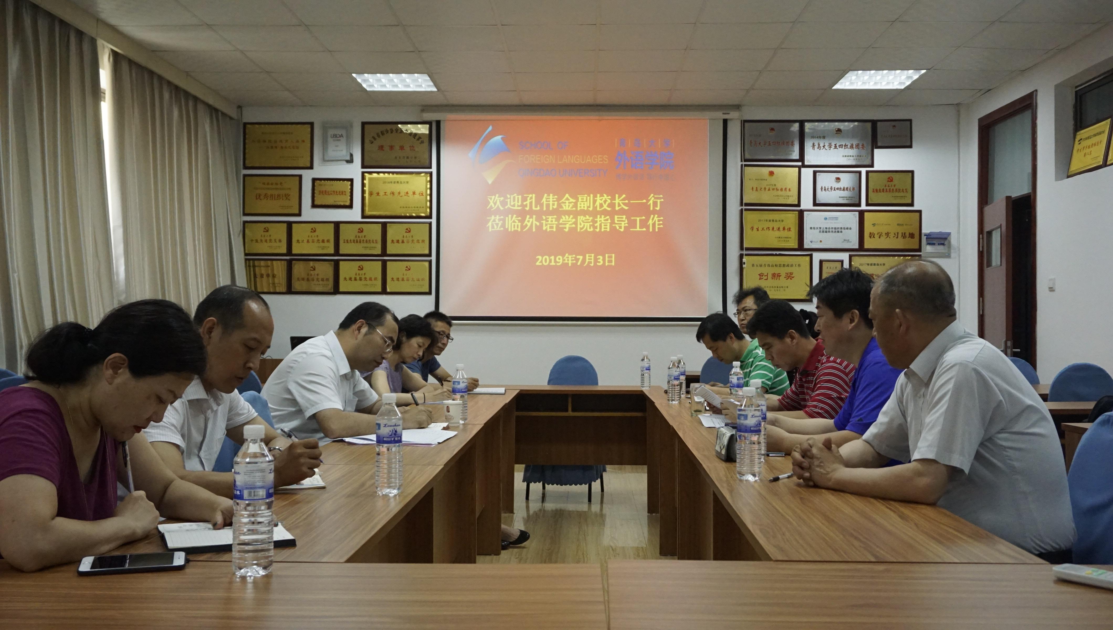 近日,校党委常委、副校长孔伟金来外院学院调研本科人才培养工作,学院领导班子成员、各教学系主任参加调研。