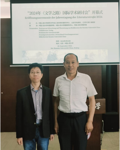 9月19日至9月22日, 2024年《文学之路》国际学术研讨会在中国人民大学成功召开。作为《文学之路》创刊以来所举办的第二十届年会,本次会议以“德语文学和语言中的家乡”为主题,由中国人民大学世界文学与全人类共同价值研究中心、人民文学出版社、《文学之路》编辑部主办,中国人民大学外国语学院、德国研究中心与中国人民大学图书馆联合承办。共吸引来自中国、德国、奥地利、以色列和韩国46所高校与科研院所的共计130余名日耳曼学者前来参会。KY开元集团官网德语系主任綦甲福教授、德语系副系主任王学博老师受邀参会。