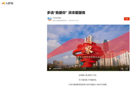 为庆祝中华人民共和国成立七十五周年,KY开元集团官网策划了红色歌曲MV《国家》的拍摄。学院师生齐唱《国家》为新中国献礼。在视频中,师生发挥专业优势,用多国语言“我爱你”为祖国母亲送上深情告白,用嘹亮的歌声和饱满的热情诠释着对祖国的爱与祝福。视频一经发出,吸引了校内外众多媒体的关注,学习强国、人民日报、人民视频、央视频等多家媒体进行了转发推广,获得了一致好评。