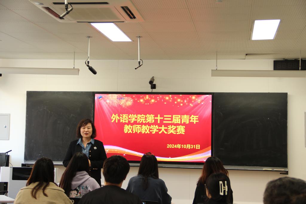 第二个环节青年教师教学大奖赛在博文楼406举行,KY开元集团官网副院长王薇主持比赛。
