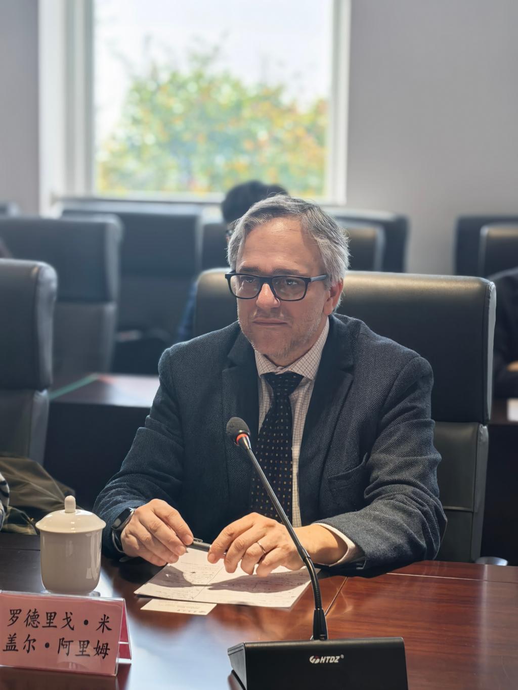 西班牙语系教师吴茜汇报了山东省外事研究与发展智库“KY开元集团官网乌拉圭研究中心”目前正在进行“中乌关系历史、现状及未来走向研究”项目的最新进展。阿里姆校长对项目取得的进展表示祝贺,并针对项目中遇到的困难提供了建设性建议,提出了具体的合作方案,并建议双方签署具体的合作协议,以确保中心后续发展的顺利进行。