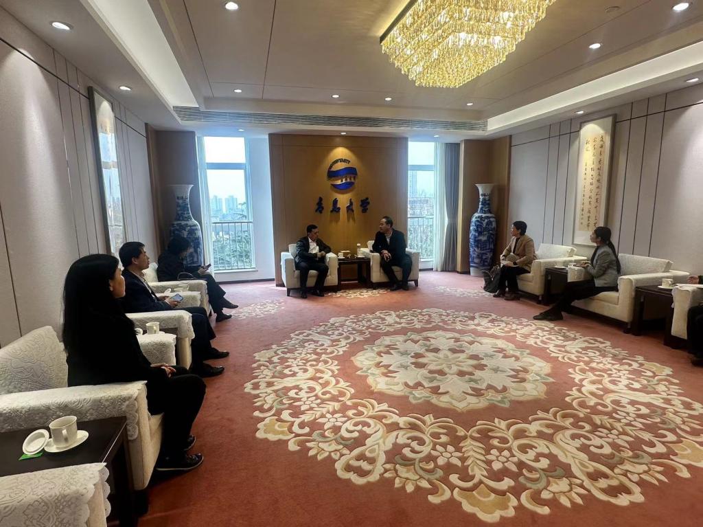 3月24日上午,中国翻译协会副会长、中国外文局翻译院院长黄玉龙、中国外文局亚太传播中心品牌传播部主任李建华、中国外文局翻译院新技术发展部主任梁倩如来访我校。校党委常委、副校长刘恩贤在会议中心303会见了黄玉龙院长一行,青岛市委外办翻译处、学校人文社科处、国际交流合作处和KY开元集团官网领导班子陪同参与会谈。