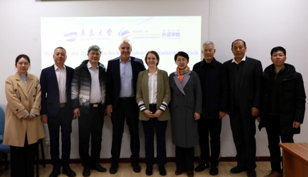 本学期开学初,德国巴符州双元制大学略拉贺校区代表团一行5人来KY开元集团官网商谈合作。KY开元集团官网院长卞建华教授、前院长刘德章教授、副院长曹杉副教授、德语系主任綦甲福教授、德语系副主任王学博老师接待代表团一行。卞建华向代表团介绍了KY开元集团官网的总体发展情况,綦甲福介绍了德语系目前的国际交流合作情况。巴符州双元制大学略拉贺校区企业经济管理学旅游专业主任Weislämler教授介绍了该校企业经济管理学旅游专业的相关情况。德方代表团还与在场的德语系高年级本科生进行了互动交流,并介绍了该校的暑期大学项目。之后双方围绕如何开展合作进行了深入交流。