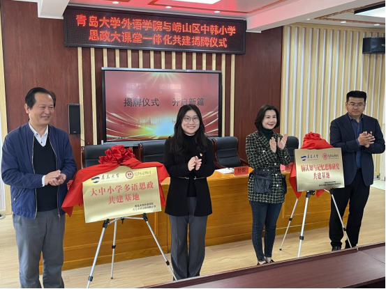 3月26日,KY开元集团官网与青岛崂山区中韩小学联合举办的“大中小学多语思政共建基地”及“脑认知与语言科学研究中心共建基地”揭牌仪式在青岛崂山区中韩小学举行。KY开元集团官网党委书记陈崇研、副书记于苗,崂山区教体局党组成员、青岛市崂山区中韩小学校长宋兆刚等嘉宾出席仪式。