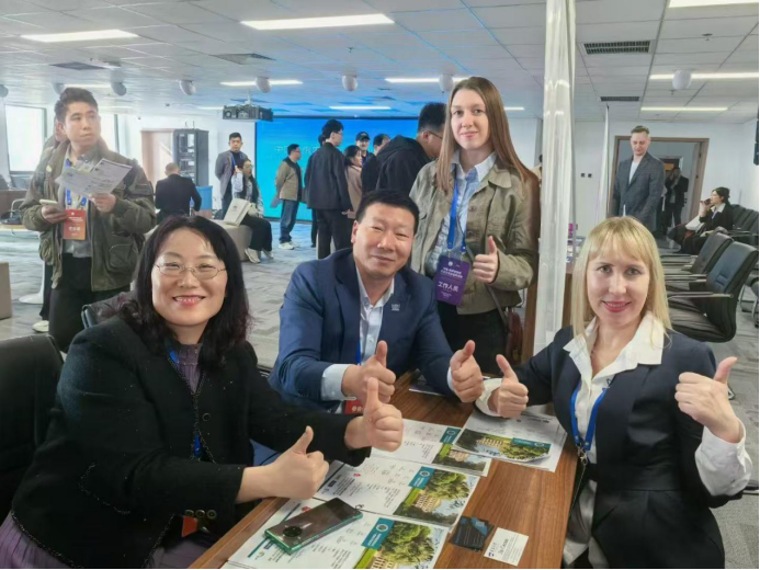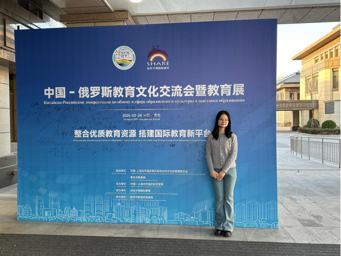 2025年3月24日,中国—俄罗斯教育文化交流会暨教育展活动在中国—上海合作组织经贸学院举行。KY开元集团官网上合英俄双语创新实验班2021级陈柳童、许春艳两位同学作为俄语翻译,在刘晓玲老师的指导下,为本次活动提供语言服务。