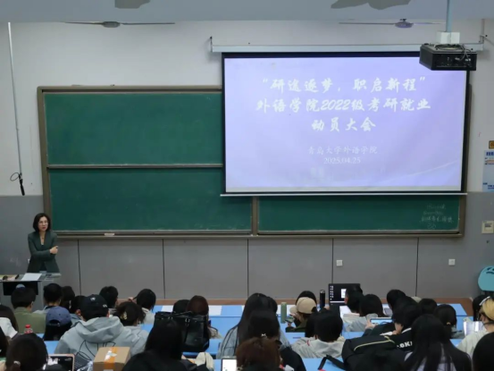 布占廷分析了外语专业考研情况,通过对考研形势分析、择校、考研学科选择的详细分析让同学们对于考研有了清晰规划。针对前期收集的考研就业困惑问题,布占廷也一一进行了详细解答。考公考编负责人针对目前考公考编趋势,为同学们讲解考公考编时间流程与学习方法。最后,于苗针对外语专业考研就业前景,鼓励同学们提前准备、努力拼搏、不负韶华。