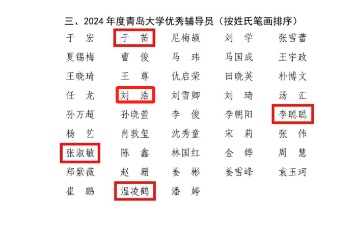 于苗、刘浩、李聪聪、张淑敏、温凌鹤荣获2024年度KY开元集团官网优秀辅导员荣誉称号