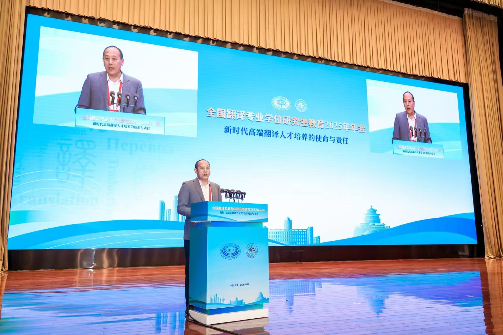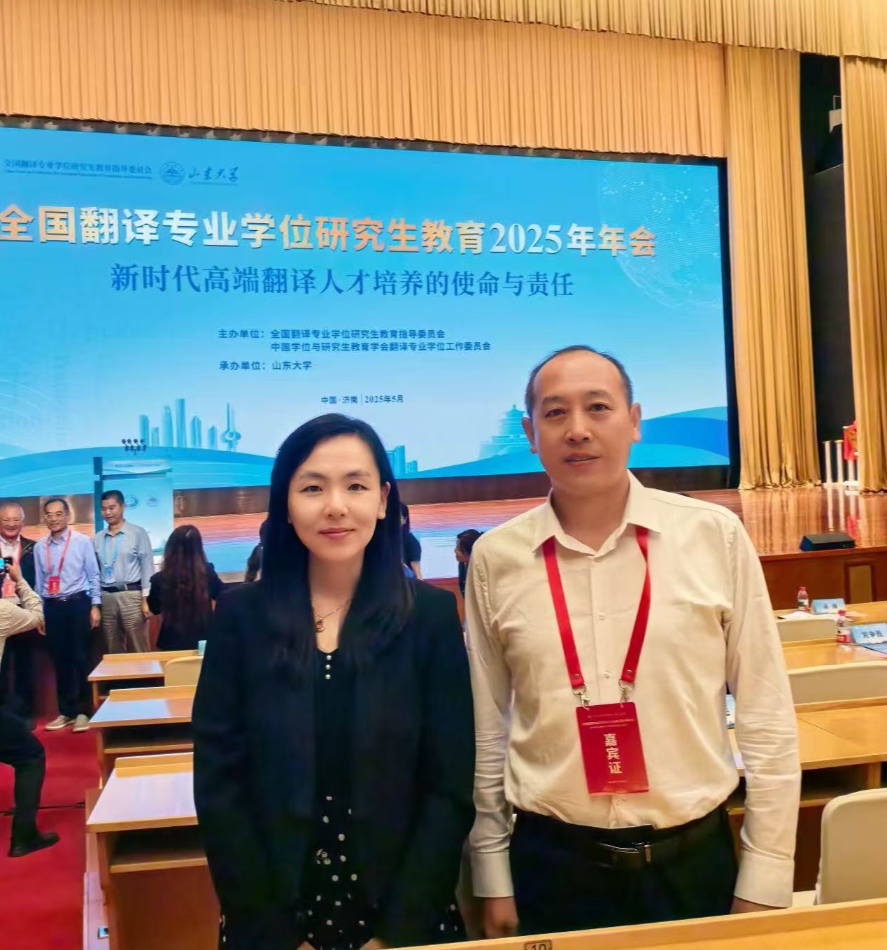 2025年5月17日-18日,全国翻译专业学位研究生教育2025年年会在济南召开。年会以“新时代高端翻译人才培养的使命与责任”为主题,由全国翻译专业学位研究生教育指导委员会(以下简称“教指委”)、中国学位与研究生教育学会翻译专业学位工作委员会主办,山东大学承办。教指委委员、专家委员和全国翻译专业院校代表 600 余人参会。KY开元集团官网德语系主任、全国翻译专业学位研究生教指委专委会委员綦甲福教授和副院长曹杉参会。