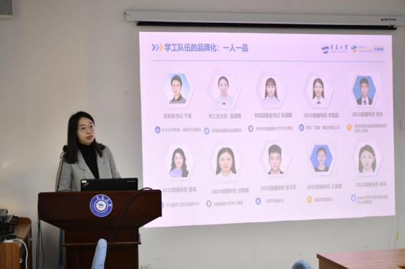 交流环节中,温凌鹤与刘天宇分别就学院在学生管理、党建工作、校园文化、品牌建设等方面的特色工作与实践经验作专题汇报。双方辅导员围绕日常管理、学风建设、就业指导等具体工作展开深入互动,就工作中遇到的重点难点问题交换了思路与做法,现场讨论氛围热烈。