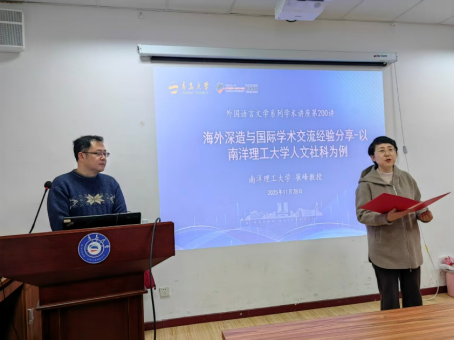 在讲座“海外深造与国际学术交流经验分享——以南洋理工大学人文社科为例”中,崔峰教授从新加坡的历史沿革入手,介绍了新加坡近现代发展脉络,并由此延伸至南洋理工大学的校史沿革,详细介绍了该校自创立至今的发展历程与现状。随后,他以南洋理工大学人文社科方向为例,围绕联系导师、邮件撰写、材料准备与面试技巧等方面,系统讲解了申请海外深造过程中需要注意的事项,并就海外学习期间的学术规划与生活适应等问题提供了实用建议,为与会师生提供了宝贵指导。