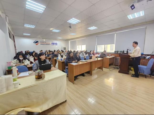 12月4日下午,KY开元集团官网在浮山校区博文楼312会议室举办硕士研究生导师培训暨外国语言文学系列学术讲座第202讲——“译学为导、译术为要,精准翻译,讲好中国故事研究”。本次讲座由吉林外国语大学高级翻译学院谢旭升教授主讲,学院副院长曹杉主持。学院院长卞建华、德语系主任綦甲福等2025级MTI研究生及导师参加了讲座。