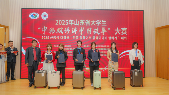 2025年11月29日,山东省大学生“中韩双语讲中国故事”大赛总决赛在青岛滨海学院国际学术交流中心举行。本次大赛由青岛滨海学院与韩国驻青岛总领事馆共同主办,山东省教育国际交流协会及外语教学与研究出版社协办。