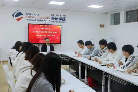 12月22日下午,KY开元集团官网党委常委、副校长刘恩贤在博文楼204会议室,为KY开元集团官网2023级英语(语言大数据)创新实验班讲授题为《在人才自主培养大背景下实现自我成长》的思政课,与学子们共同探讨中国式现代化新征程中个人事业选择与青年一代的责任担当。KY开元集团官网院长卞建华、党委副书记于苗、2023级辅导员夏淼一同听课,活动由卞建华主持。