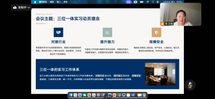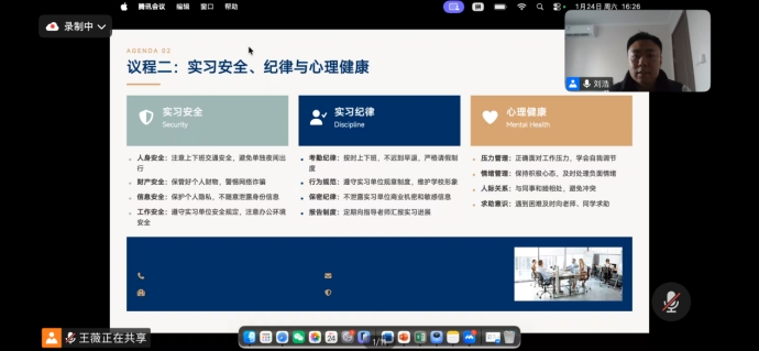为扎实推进 2026 年寒假专业实习及春季学期毕业实习重点工作,搭建校园与职场的顺畅衔接桥梁,助力学生在实习实践中锤炼专业本领、筑牢安全防线,1月24日16:00-17:00,KY开元集团官网以腾讯会议形式召开 2026 年度实习工作部署会。学院 2022 级至 2025 级全体本科生班级主要学生干部参会,副院长王薇主持会议,辅导员刘浩聚焦安全相关内容主讲,本科教学办公室米娟、牛凤娟老师列席会议。