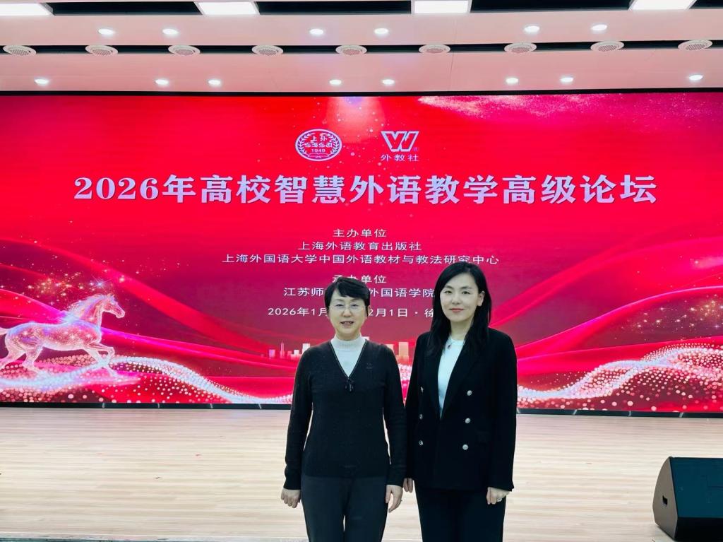 1月30日至2月1日,学院院长卞建华、副院长曹杉赴徐州参加“2026年高校智慧外语教学高级论坛”。本次论坛由上海外语教学出版社、上海外国语大学中国外语教材与教法研究中心主办,江苏师范大学外国语学院承办。论坛聚焦大语言模型与生成式人工智能背景下的高校外语教学改革与创新,汇聚国内知名专家学者和高校外语教学负责人,探讨智慧外语教学的实践路径与发展方向。