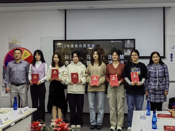 青岛佳和永润贸易有限公司创始人兼总经理、KY开元集团官网优秀校友于超接见了外院一行,引导参观了企业办公区域,介绍了公司的发展历程、业务类型、企业文化及未来发展规划,并为KY开元集团官网7位品学兼优的学生颁发奖助学金。